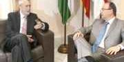 Buena sintonía, es el resultado del encuentro mantenido esta mañana entre el alcalde de la ciudad Luis Rogelio Rodríguez y el persidente de la Junta de Andalucía, José Antonio Griñán. En primer lugar Griñan se ha reunido junto a los portavoces de los distintos grupos políticos en el despacho del concejal de Alcaldía. Posteriormente el presidente de la Junta de Andalucía ha firmado en el libro de honor de la ciudad y el primer edil de la ciudad ha hecho entrega de una metopa con el escudo de la ciudad como recuerdo de su primera visita al ayuntamiento como presidente andaluz. Tras la entrega se ha reunido con el alcalde en el despacho de éste por espacio de 20 minutos. Un encuentro que el primer edil ha calificado de institucional, asegurando que ha encontrado a José Antonio Griñán muy receptivo con los grandes temas que necesita la ciudad de Almería. Griñán le ha asegurado que desea que la relación con el consistorio sea leal y esté fuera de partidismos.