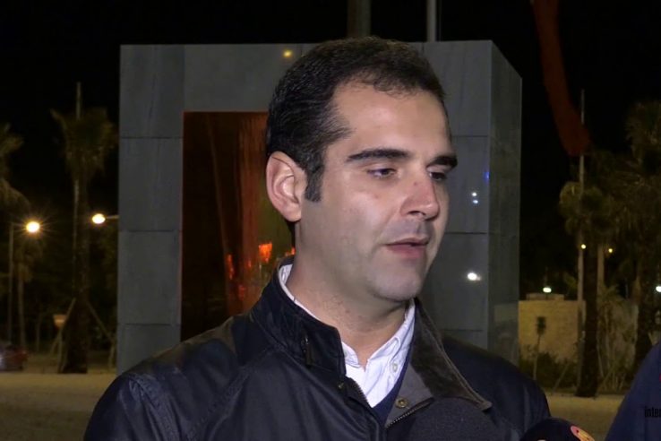 El alcalde destaca la mejora estética que las nuevas fuentes iluminadas aportan a la rotonda por la