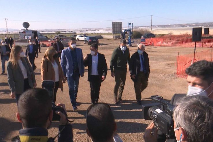 El presidente del gobierno, Pedro Sánchge, ha visitado esta mañana en Níjar la primera planta de geotermia que permitirá que 14 hectáreas invernadas cuenten con un sistema de calefacción más sostenible y económico.