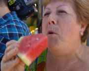 Sandía, melón, almendras, queso fresco y miel son algunos de los productos que se han degustado hoy en el Palmeral