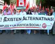 La concentración y marcha convocada por los sindicatos de clase que tuvo lugar ayer en la capital almeriense tuvo como principal bandera la protesta en contra de los nuevos PGE.