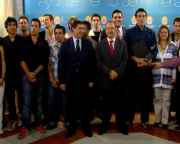 El alcalde ha recibido a los integrantes de la selección nacional de esgrima. Entrenarán en el Edificio Polivalente de El Toyo hasta el próximo sábado para preparar sus próximas competiciones.