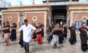 Con motivo de la celebración del 53 Festival de Flamenco y Danza de Almería se ha llevado a cabo esta mañana un flashmob dirigido por el bailaor almeriense Eduardo Leal,