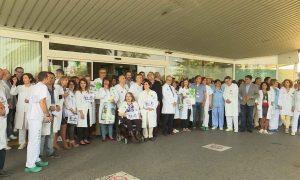 Más de medio centenar de profesionales sanitarios se han concentrado hoy a las puertas de Torrecárdenas para mostrar su repulsa a la última agresión sufrida por un compañero.