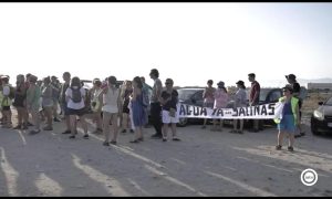 Multitudinaria manifestación por Las Salinas de Cabo de Gata. Los Manifestantes piden desvincular conservación del humedal de la explotación salinera