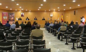 El alcalde visita las Hermandades de Pasión y de Gran Poder que son las que cada Lunes Santo salen en procesión por la capital. Acompañado por el parlamentario andaluz popular Ramón Herrera, Fernández-Pacheco deposita sendos ramos de flores a los pies de las imágenes de las hermandades en nombre de la ciudad de Almería